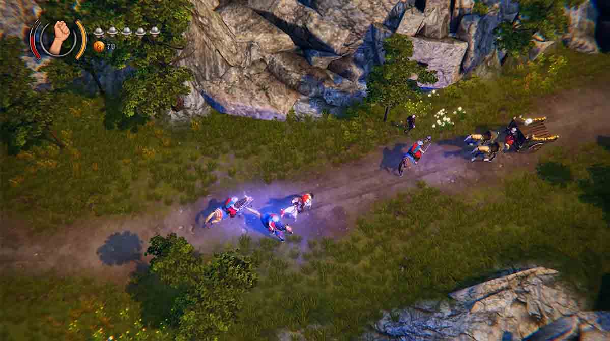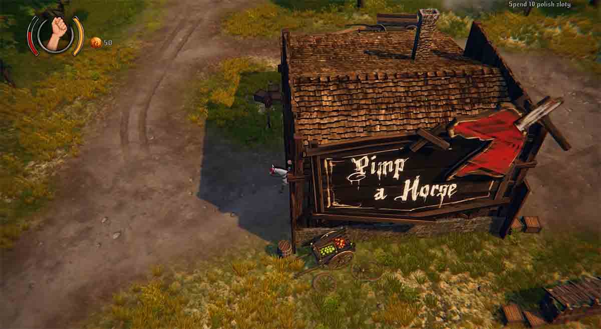 Die Aussage „GTA im Mittelalter“ ist bewusst gesetzt und tatsächlich liegt das recht nahe. Gleich der erste Eindruck erinnert stark an die ersten Titel von GTA – eine schöne Top-Down-Perspektive und viel Gefluche (und die Sprachausgabe ist klassisches Gebrummel).
