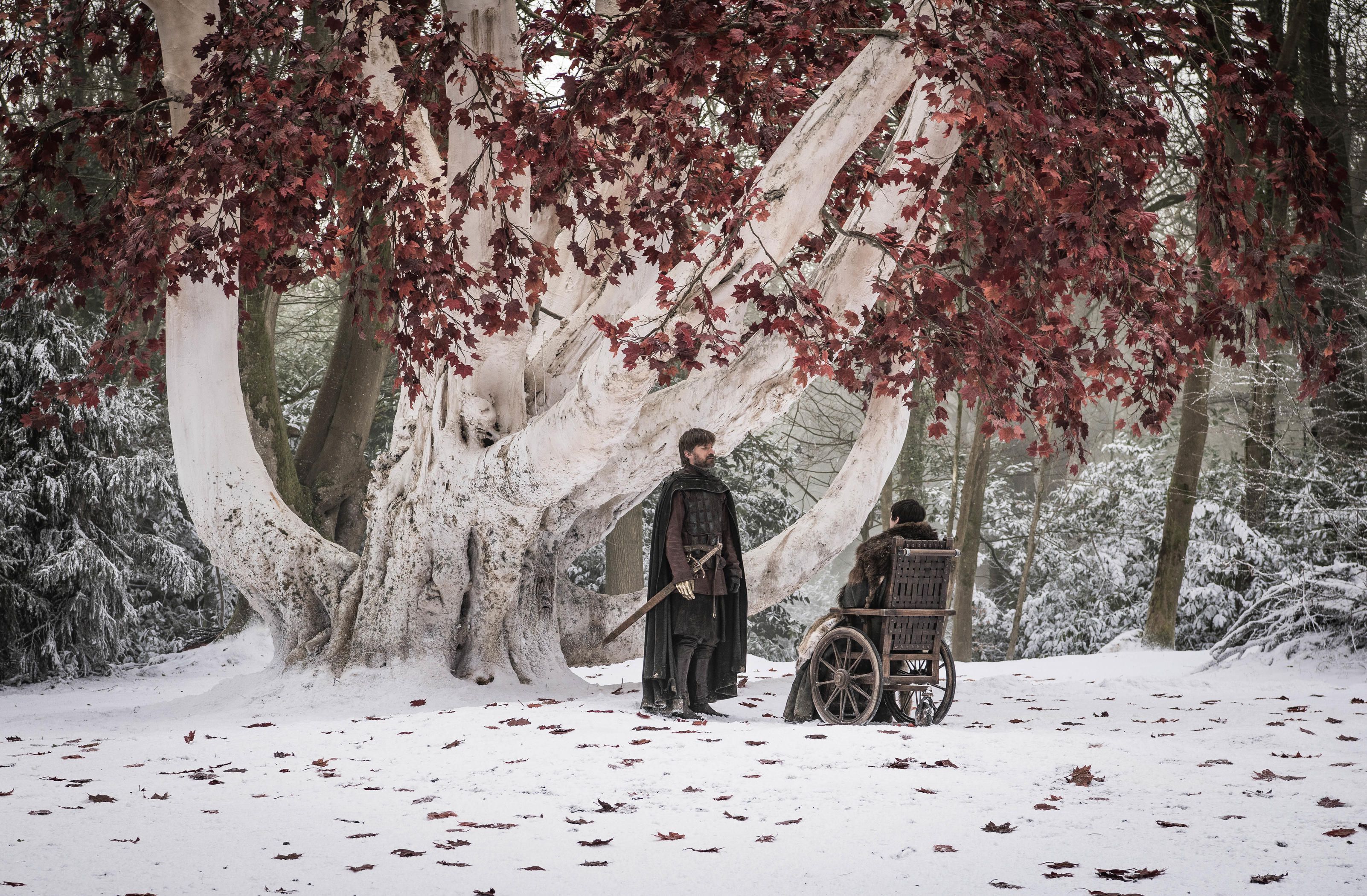 Das folgende Aufeinandertreffen von Bran und Jamie ist dagegen weit weniger angespannt, als man hätte vermuten können. Jamie entschuldigt sich dafür, dass er den Jungen damals aus dem Turm gestoßen hat, Bran hingegen scheint ihm auf seine geheimnisvolle Art beinahe dafür zu danken. Schließlich wäre er ansonsten nicht derjenige, der er nun ist.