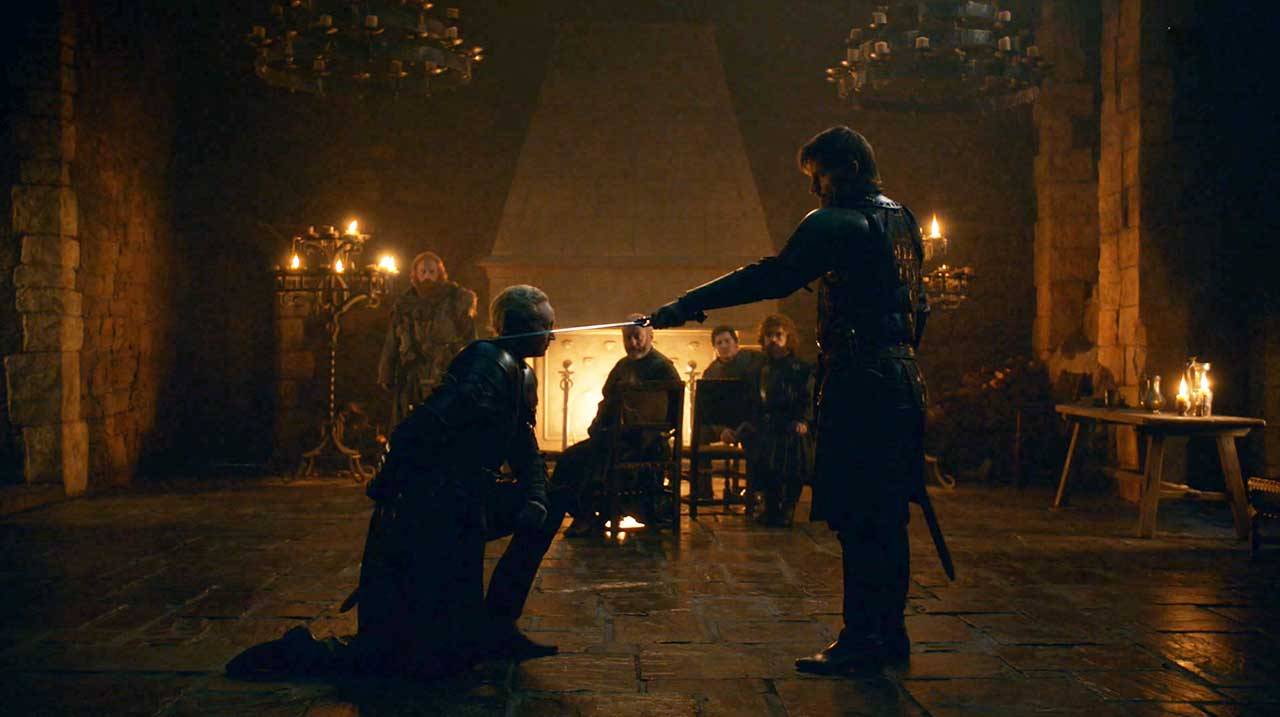 Die Runde um Tyrion wird zweifelsohne als unvergesslicher Moment in die Geschichte der Serie eingehen. Sie alle bemerken, dass sie zu einem Zeitpunkt gegen die Starks gekämpft haben, doch nun sind sie vereint, um Winterfell und die anderen Königreiche zu verteidigen. Abgerundet wird die Szene durch Briennes Ritterschlag seitens Jamie, der einen fast vergessen lässt, dass der Tod praktisch vor den Toren steht.