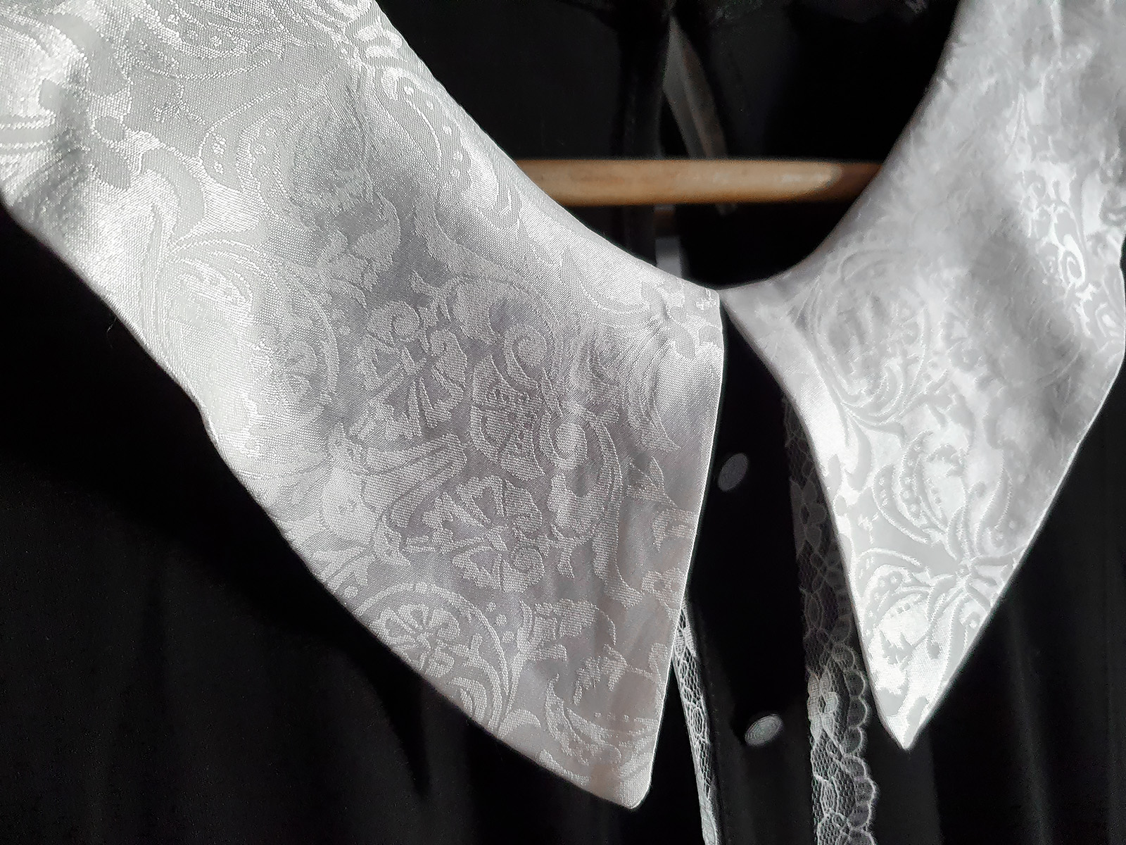 Der dünne, fließende Stoff des Haunted Doll Dress ist perfekt für sommerhafte Temperaturen. Der Kragen besteht aus wunderschönem, detailreichem weißen Brokatstoff. Leider bekommt man dieses tolle Detail auf den Produktbildern gar nicht zu sehen aber für solche Fälle habt ihr ja mich.