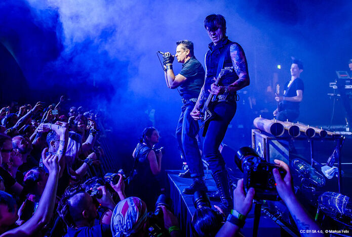 EBM signifie "Electronic Body Music" (musique électronique corporelle). Comme son nom l'indique, il se caractérise par une musique électronique. Elle est généralement très agressive et se compose de chants parlés qui rappellent les exercices militaires. Dans le jargon, on appelle cela du "shouting". Dans la réalité, on a l'impression de se faire hurler dessus. La plupart du temps, le "chant" est toutefois déformé électroniquement et s'intègre dans le rythme dansant. Les pères fondateurs du genre sont des groupes comme Front242 et Nitzer Ebb, qui se produisent encore aujourd'hui dans des festivals. La communauté de fans d'origine était composée de skinheads, de punks et de hooligans. L'ambiance des concerts était aussi agressive que la musique elle-même. C'est peut-être aussi pour cette raison que les représentants de l'EBM rassemblaient principalement un public masculin autour d'eux.