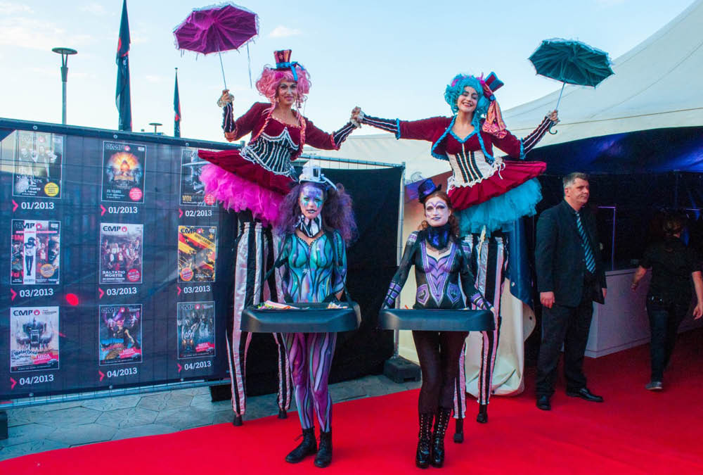 Für die Feier haben wir auf unserem Firmengelände ein Zirkuszelt errichten lassen. Show Acts wie Schlangentänzerin Cara, Vertikaltuchartistin Trinity und die Feuerkünstler von Firedancer entführten über 550 begeisterte Gäste (darunter neben Mitarbeitern und Geschäftspartnern aus aller Welt auch Vertreter der Stadt Lingen) in die faszinierende Welt des EMP Rock Circus. Dafür, dass das Motto Rock nicht zu kurz kam, sorgten außerdem die Cover-Band Monsun und DJ Michelle.