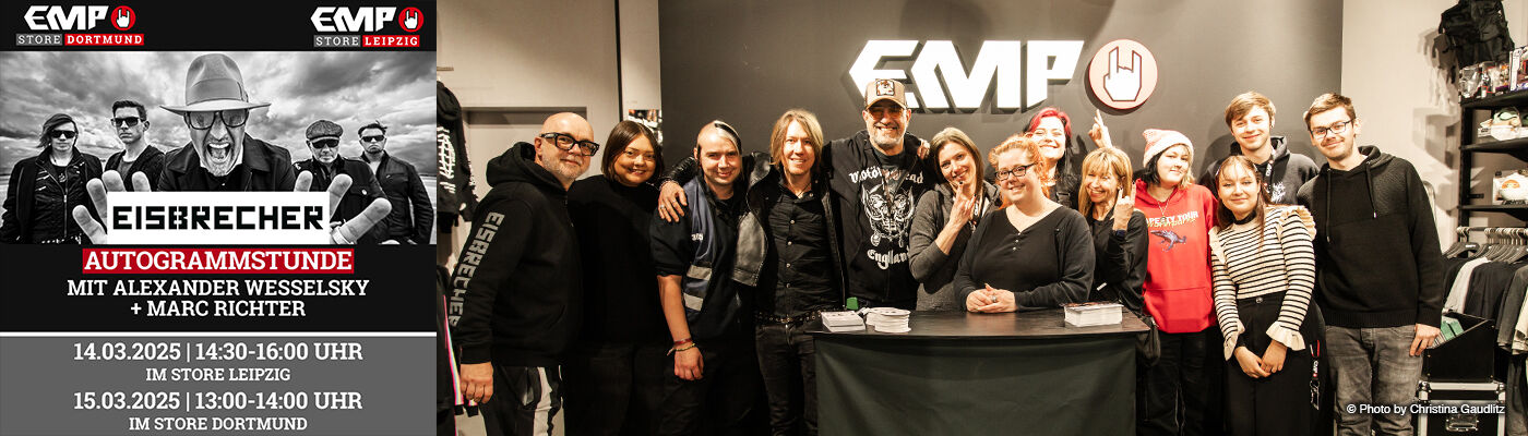 • Mit ihrem neuen Album Kaltfrontᵒ! im Gepäck stürmten Eisbrecher die EMP Stores in Leipzig und Dortmund. Ein ausführliches Interview mit Alexander Wesselsky sowie unseren Nachbericht findest du wie immer - nur in deinem EMP #MAG!