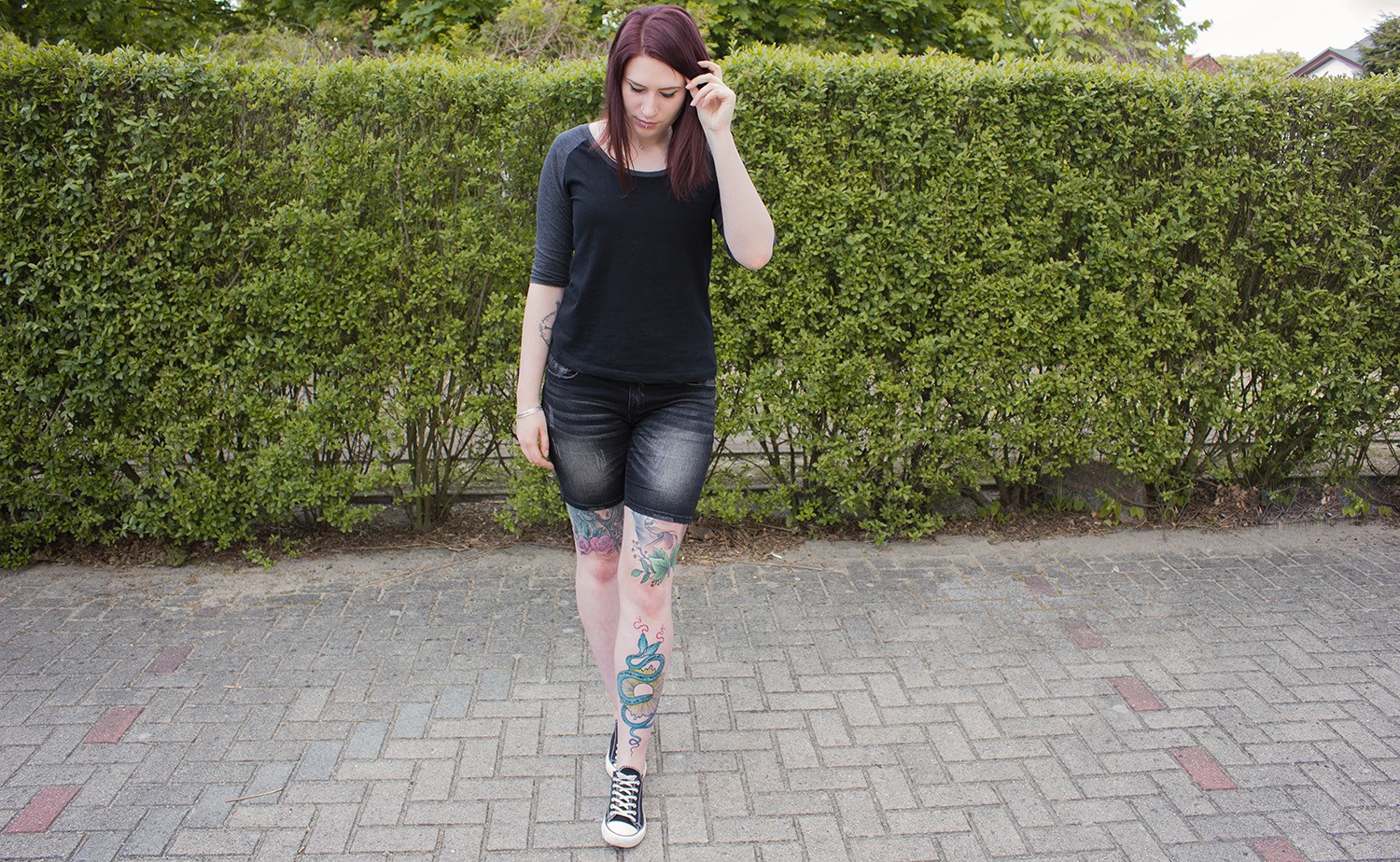 Neben all den schönen Klamotten im EMP-Shop aus nietenbesetztem Leder und Brokatstoff mit feiner Spitze, braucht man auch mal ein casual Outfit. Besonders im Alltag, wie zum Beispiel auf der Arbeit, kann, muss und darf man auch mal legerer rumlaufen. Anderenfalls wissen die werten Kollegen vor lauter Totenköpfe und unleserlichen Bandnamen gar nicht, wo sie zuerst hinschauen sollen. Aber glücklicherweise schafft der Mailorder unseres Vertrauens auch dafür Abhilfe – nämlich mit der Endless Summer Short von RED by EMP und dem Ladies 3/4 Contrast Raglan Tee von Urban Classics.