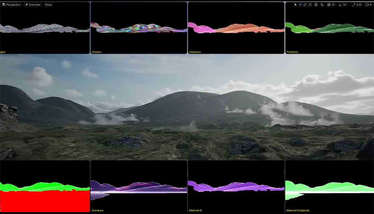 Im Video sehen wir, wie die Unreal Engine physikbasierte Prozesse darstellt – Wind, Wolken und zerstörtes Terrain. Und ganz ehrlich: Die Zerstörung ist phänomenal. Mit einem Mausklick wird die Umgebung auseinandergenommen und alle Objekte drumherum reagieren unmittelbar. Sogar ein Meteoriteneinschlag bringt die Engine nicht zum Schwitzen.Solide Grafikleistung